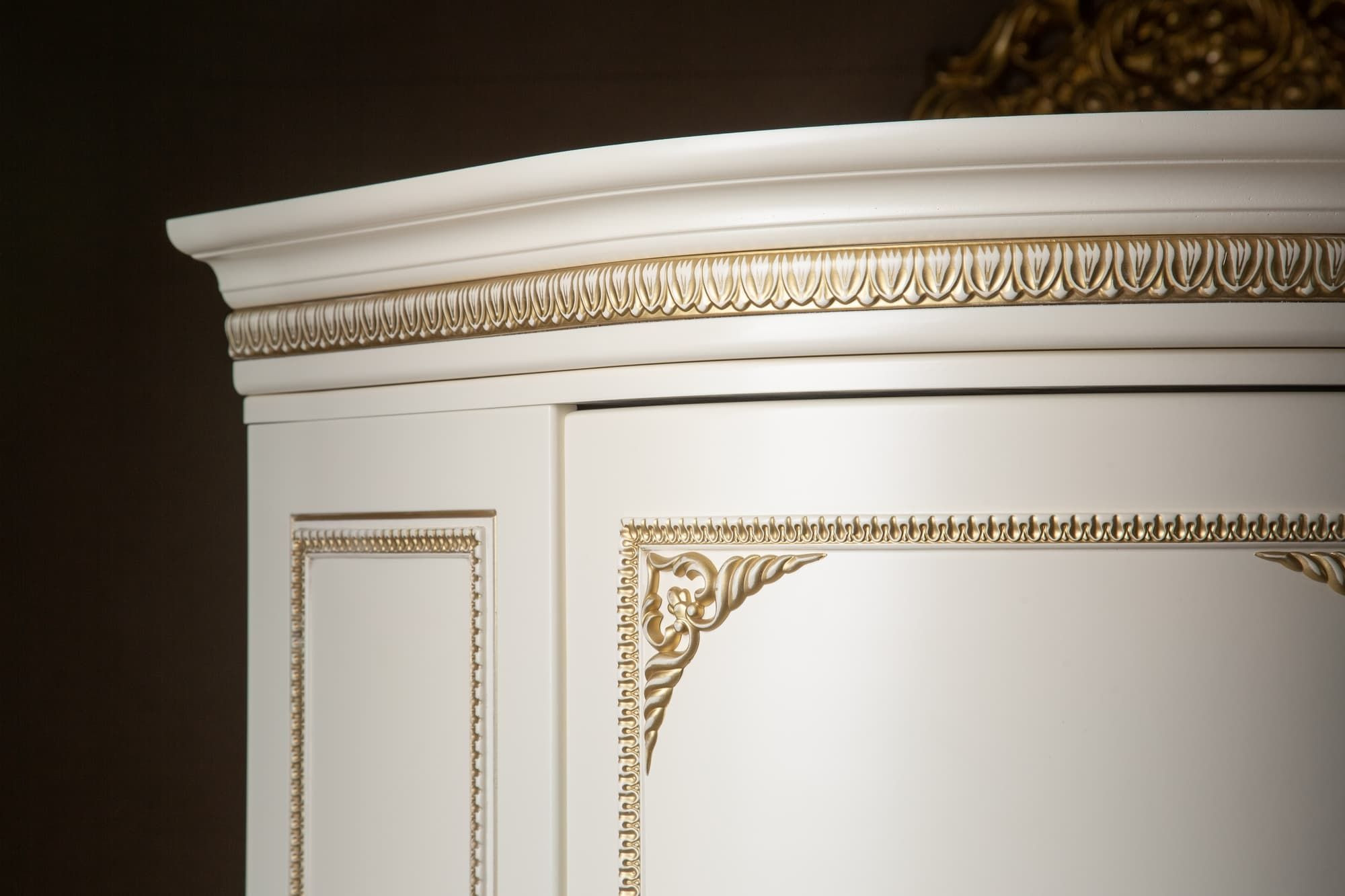 Фасад: прямой и гнутый, крашеный ЛМДФ с фрезеровкой и элементами декора, карниз из пенополиуретана, лак матовый