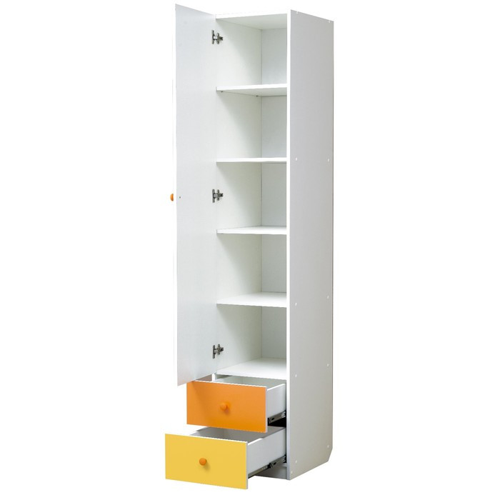 Пенал распашной однодверный с ящиками Карусель белый/оранжевый 40х49х210