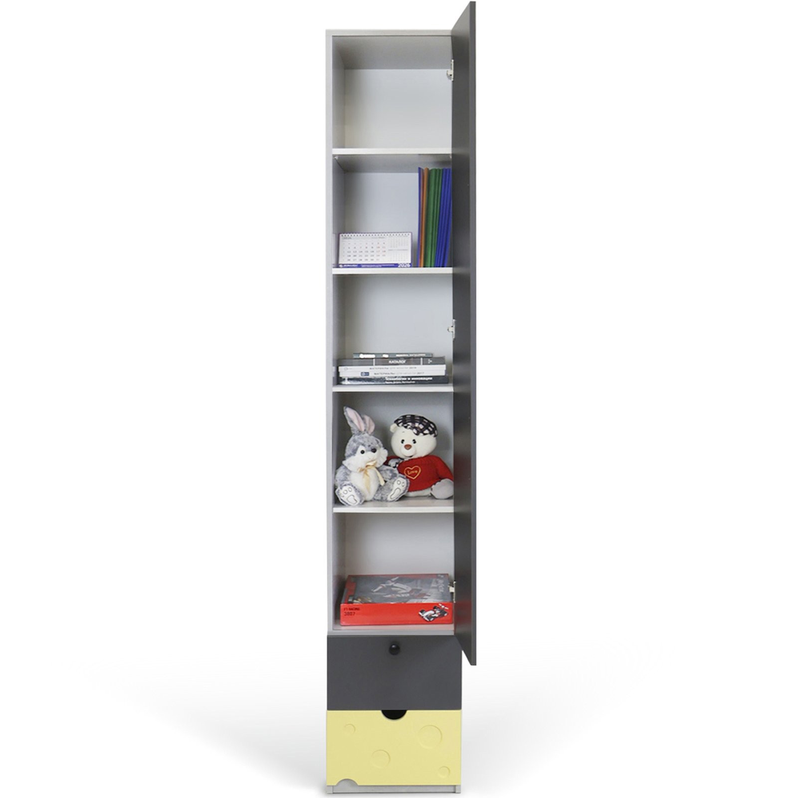 Пенал «Сыр» предназначен для хранения вещей на полках, вешалках и ящиках. «Сыр» — яркое и функциональное решение для комнаты вашего ребенка, которое сразу бросается в глаза фирменными желтыми акцентами и характерными «дырочками» сырной фактуры.
