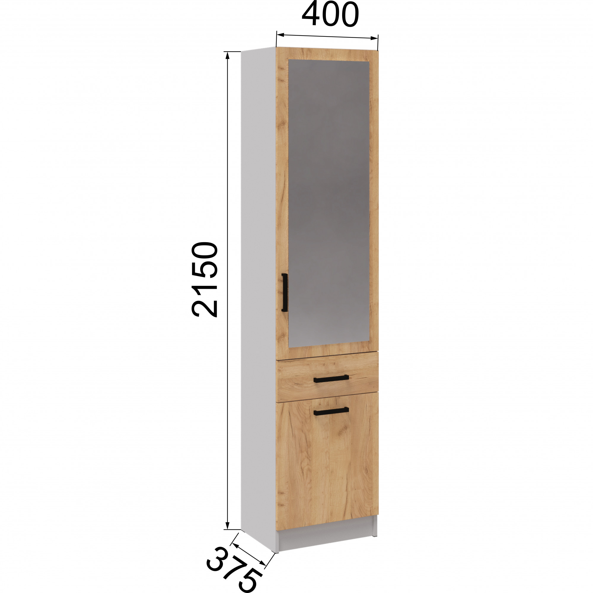 Пенал с зеркалом белый прихожая Кевин 215х40х37