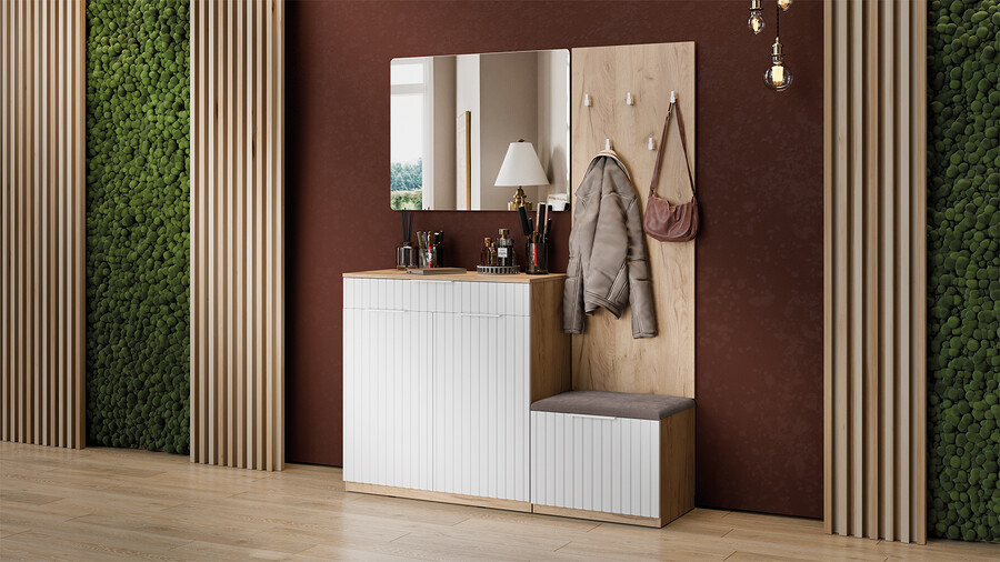 Прихожая Хилтон Дуб Крафт золотой, Белый матовый