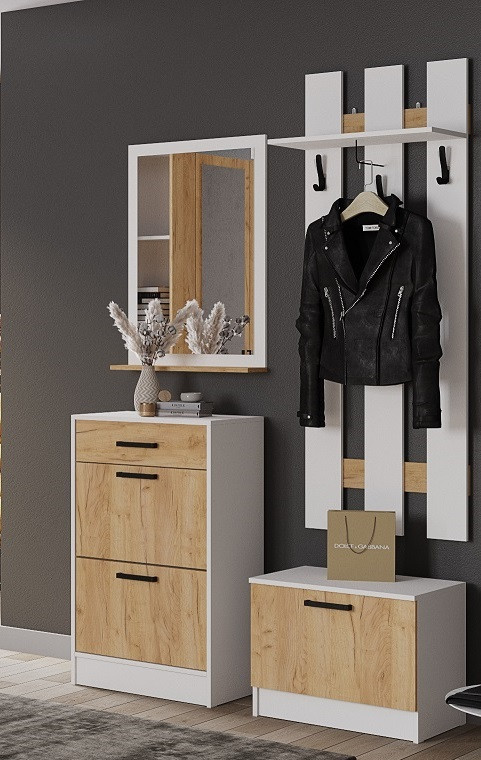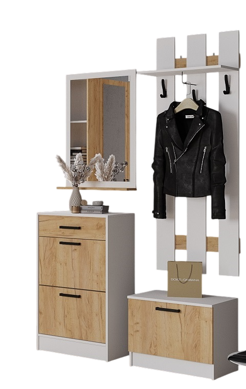 Прихожая обувница вешалка тумба зеркало Кевин белый/крафт золотой 120х60х375
