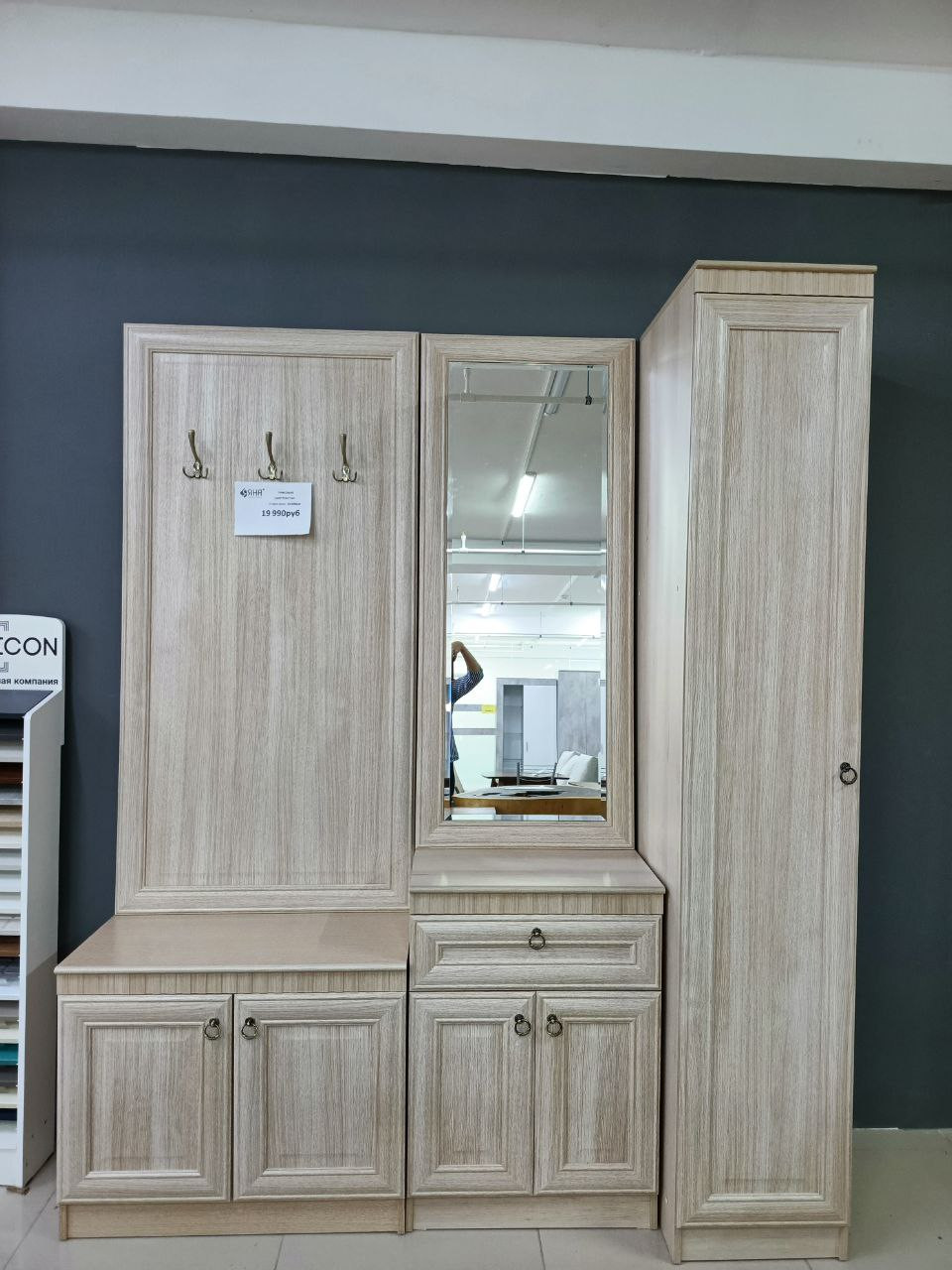 Прихожая с зеркалом тумбой и пеналом 180х55х225