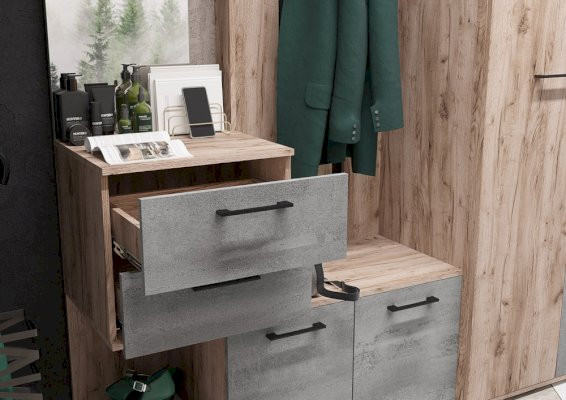 Прихожая с зеркалом ящиками и тумбой Бостон ВШ-1 дуб крафт серый бетон 110х45х212