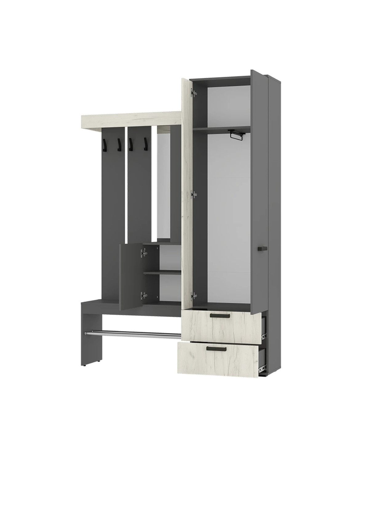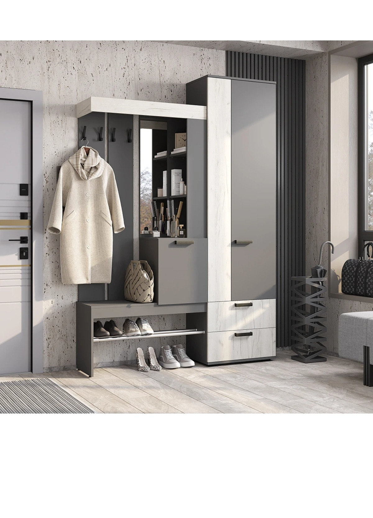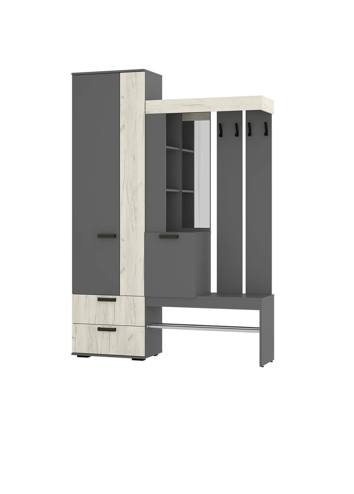 Прихожая трамп графит/дуб крафт белый 1500*2176