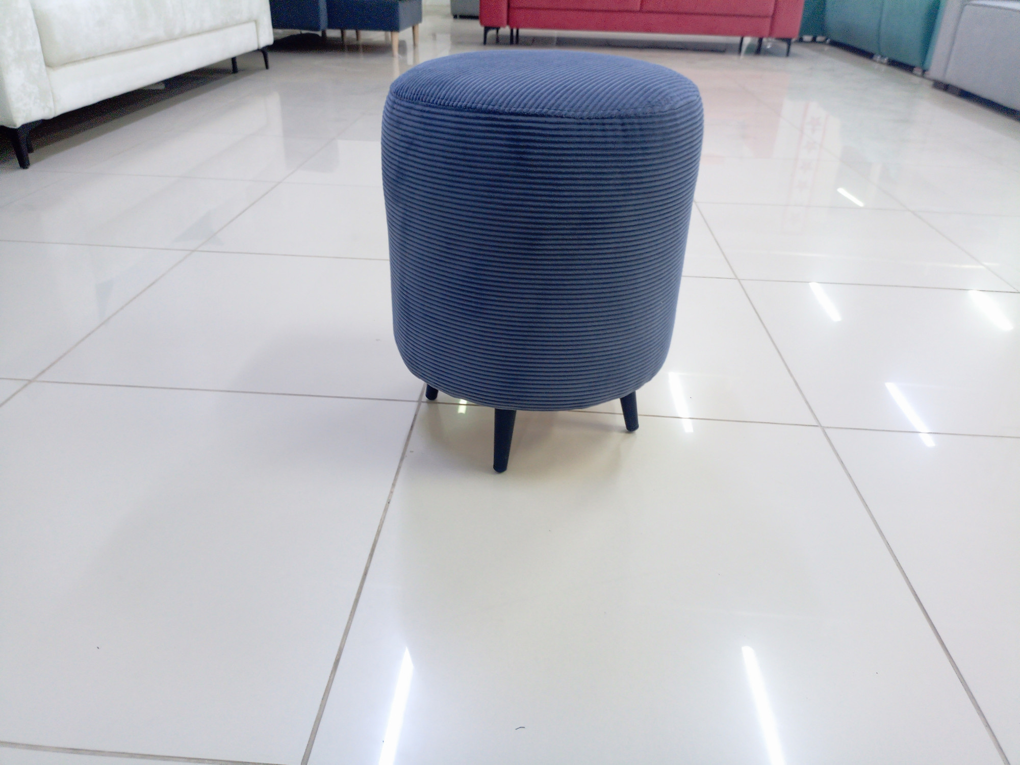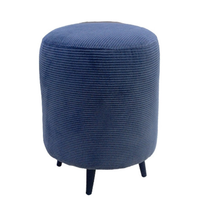 Круглый пуф отличается элегантностью, поскольку ему присущи строгие линии, идеально вписывающиеся в геометрию комнаты.