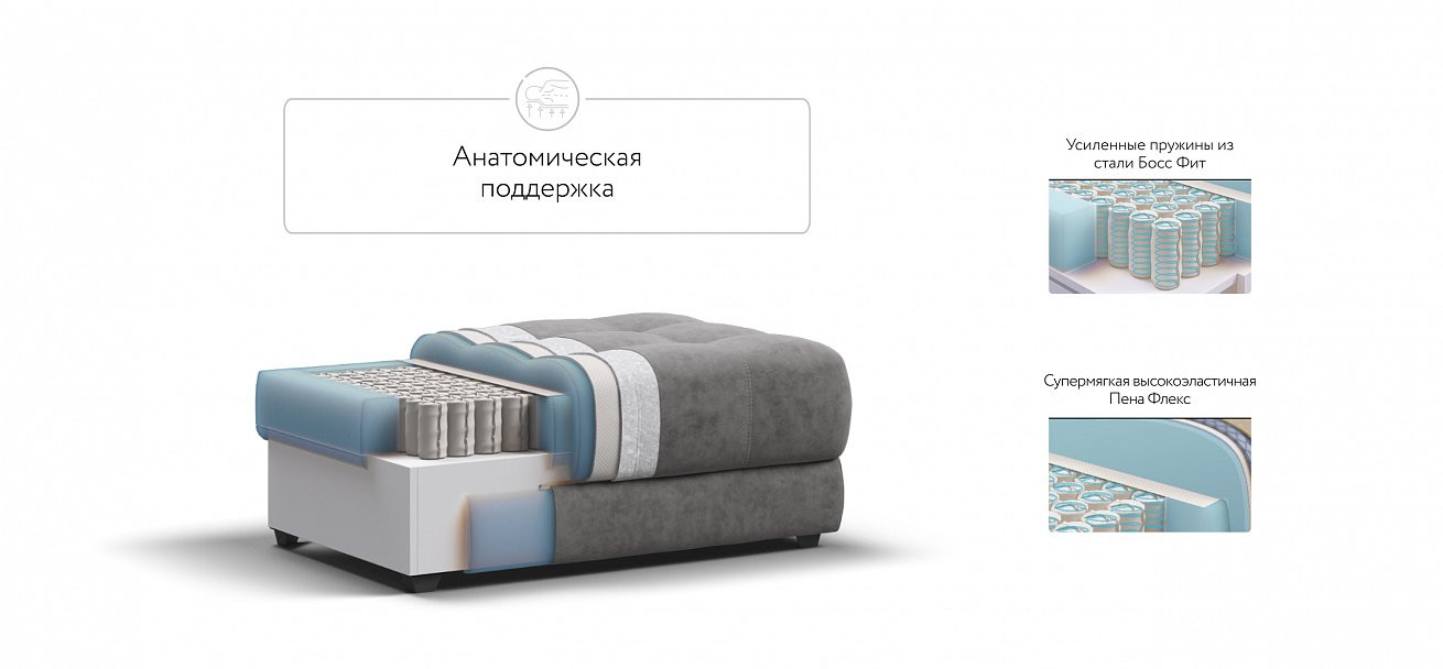 Пуф Босс- cамостоятельный предмет интерьера или дополнительное посадочное место к любому дивану Босс. В основании пуфа усиленные пружины из прочной антикоррозионной стали, а так же пена Босс Флекс (мягче обычной в 2 раза) = супер комфортный отдых!