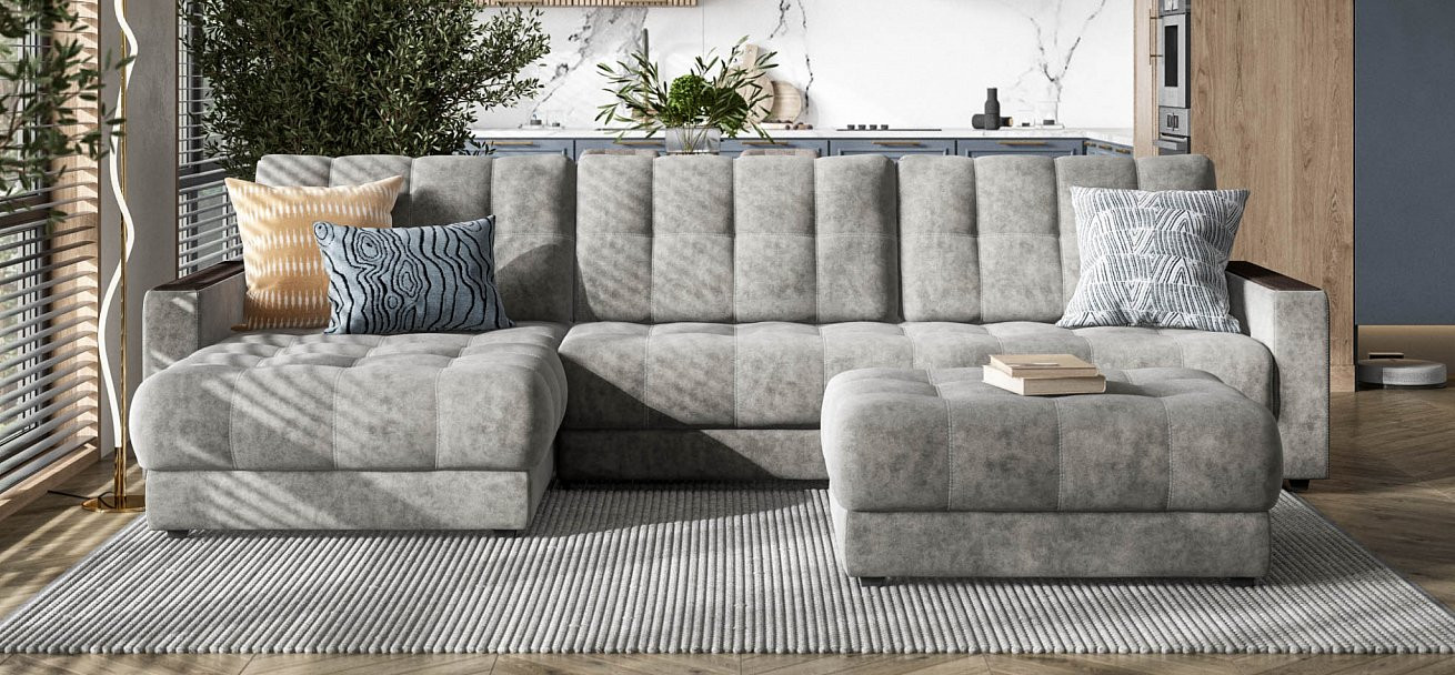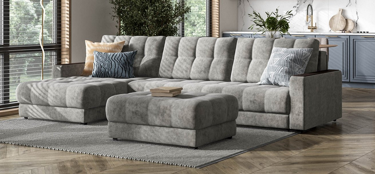 Пуф НПБ Босс велюр Алькантара серый 102х77х45