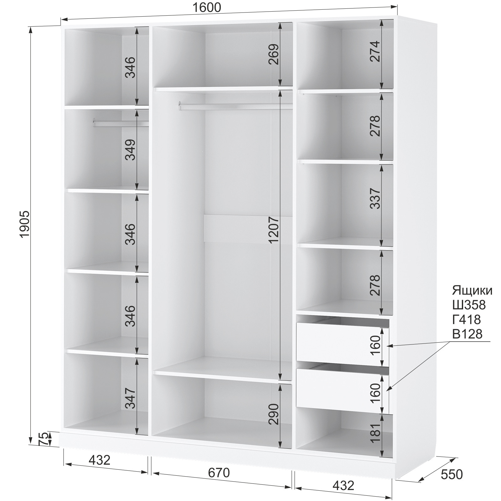 Высота изделия (мм):1905
