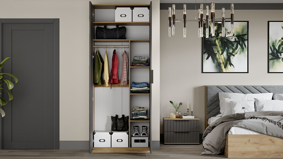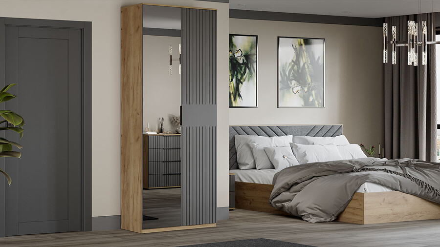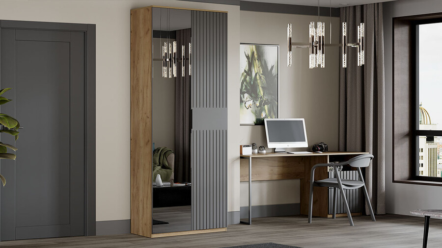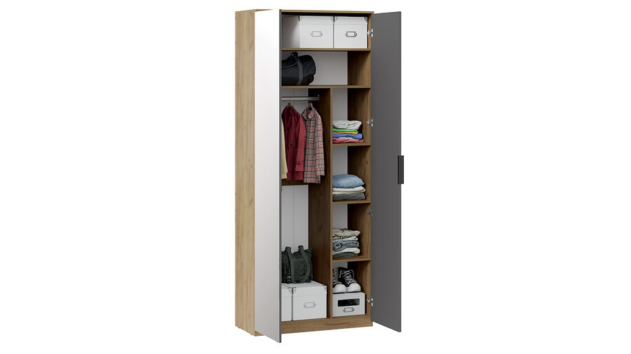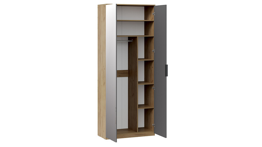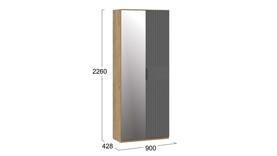 Шкаф 2-х створчатый комбинированный Хилтон Дуб Крафт золотой, Графит матовый 90х43х226