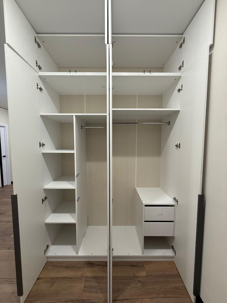 - Удобные полки — для сложенных вещей, книг или декора.