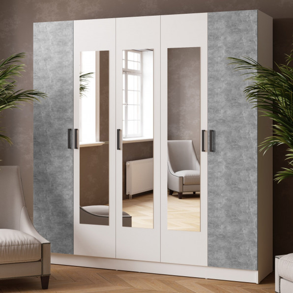 - Элегантный и в тоже время брутальный внешний вид: Белый цвет шкафа сочетается с серой текстурой "ателье светлое", добавляя стиль и уют в любой интерьер.