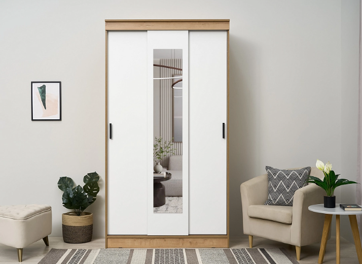 Шкаф-купе Эко дуб вотан/белый 120х57х220