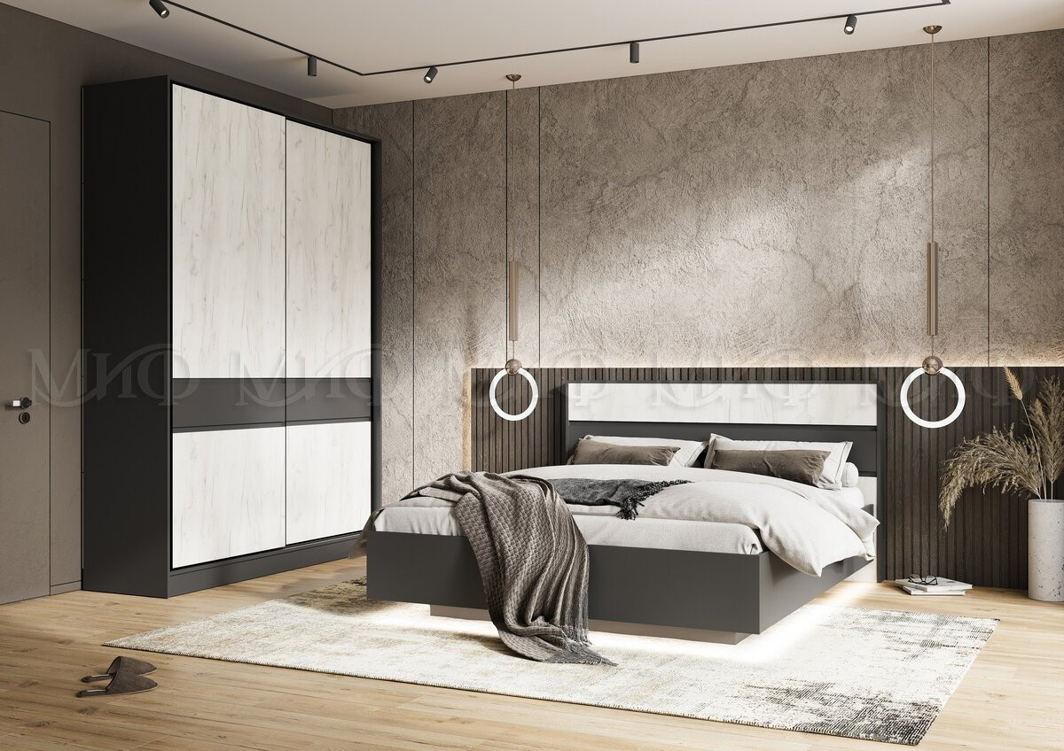 Шкаф-купе Роджина графит/дуб крафт белый 180*240*52