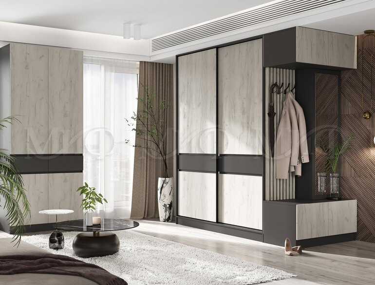 Шкафы «Роджина» — это современная модульная мебель для прихожих и спален в лаконичном стиле, отличающаяся высокой функциональностью, сочетанием текстур ЛДСП (дуб крафт/графит/белый) и высотой 2400 мм. Серия включает распашные шкафы (2-4 створки) и шкафы-купе, оборудованные полками, штангами и выдвижными ящикам