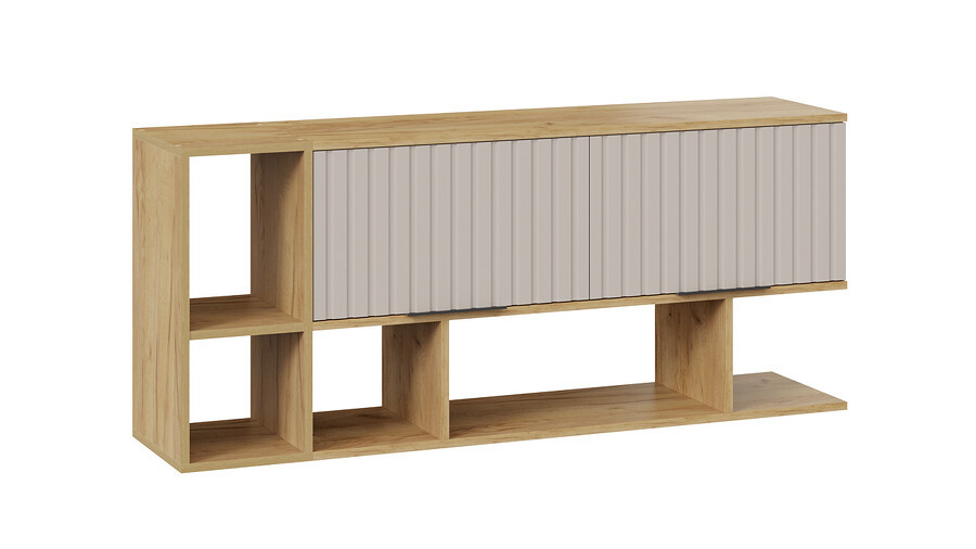Шкаф настенный с двумя полками Хилтон Дуб Крафт золотой, Мокко матовый 135*32*58