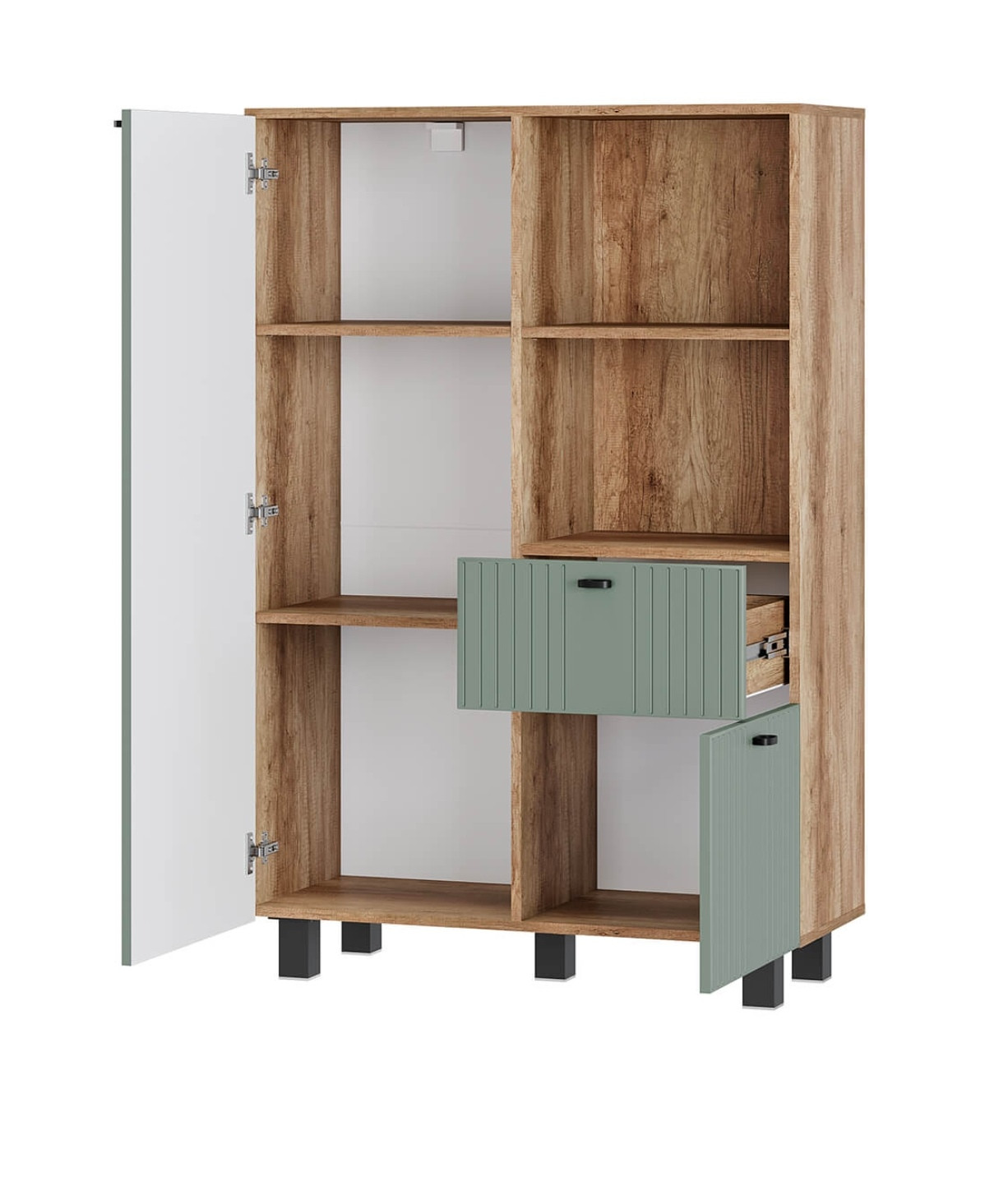 Шкаф "Олива" ШК-16 - стильный и компактный шкаф, который отлично подойдет как для гостиной, так и для кухни. Модель состоит из шести вместительных полок для хранения. На двух открытых полках можно разместить вазы, сувениры или красивую посуду. Удобный ящик с эргономичной ручкой подойдёт для мелочей.