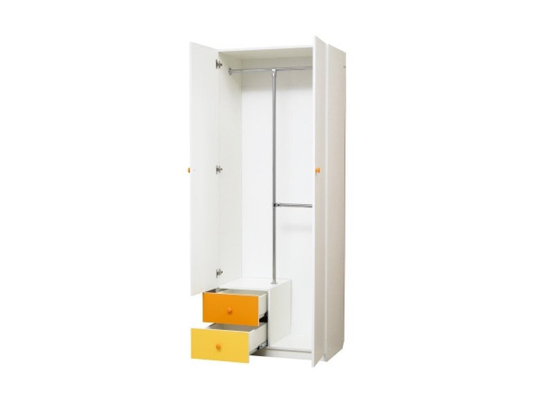 Шкаф распашной 2-х створчатый Карусель с ящиками белый/оранжевый 80х49х210