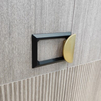 - Лицевая фурнитура: Ручки пластик: кнопка - золото матовое, рамка - черный матовый, в качестве опор (ножек) использованы пластмассовые подпятники.