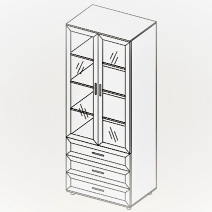 Шкаф распашной 2-х створчатый с ящиками и со стеклом Классика анкор светлый 80х44х212