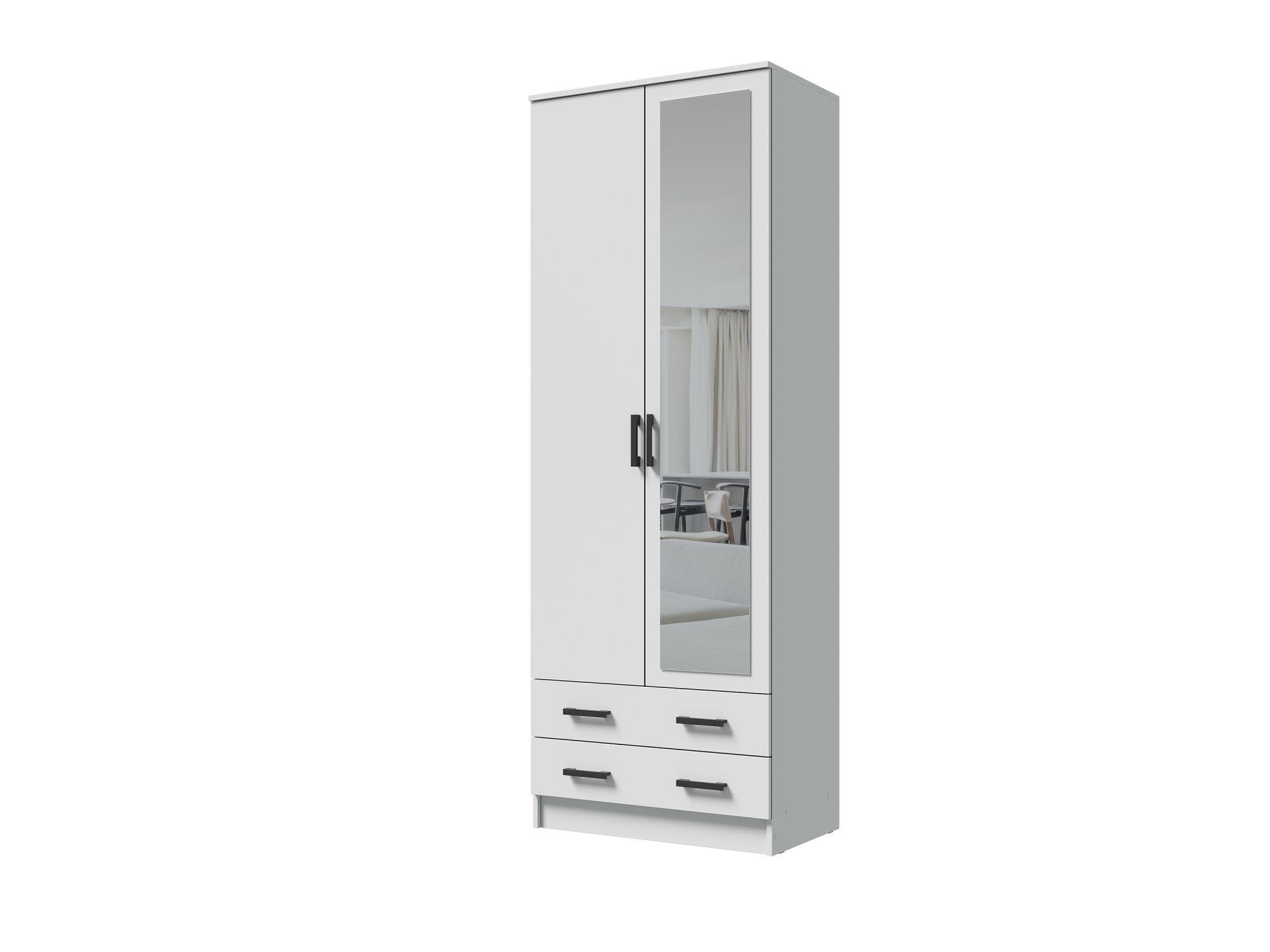 Шкаф распашной 2-х створчатый с зеркалом Дуэт Белый 96х45х230