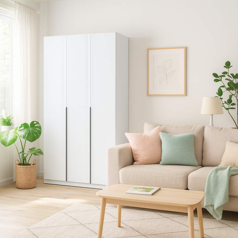 Компактные размеры делают его идеальным выбором для небольших помещений: прихожей, спальни или гостиной. Белоснежный фасад создаёт ощущение свежести и простора, а контрастные чёрные торцевые ручки придают модели стильный акцент и подчёркивают её современный дизайн.