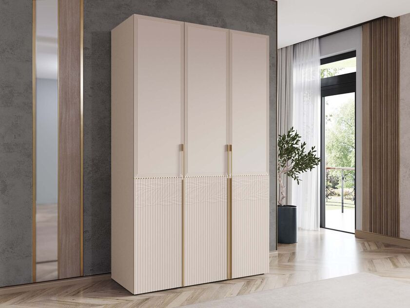 Шкаф трехдверный в комплекте «Флоренция 904 310» является частью модульной программы «Флоренция». Коллекция «Флоренция» – это образец изящности и современной роскоши. Нежный цвет «Кашемир» создает светлую и теплую основу в интерьере, которая наполняет пространство спокойствием и гармонией. Оригинальные элементы в цвете «сатиновое золото» и элегантная фрезеровка подчеркивают утонченный дизайн коллекции.