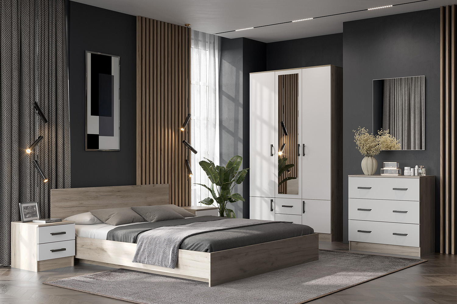 Шкаф распашной 3-х створчатый Ронда ШК-3 дуб крафт серый белый 120х52х212