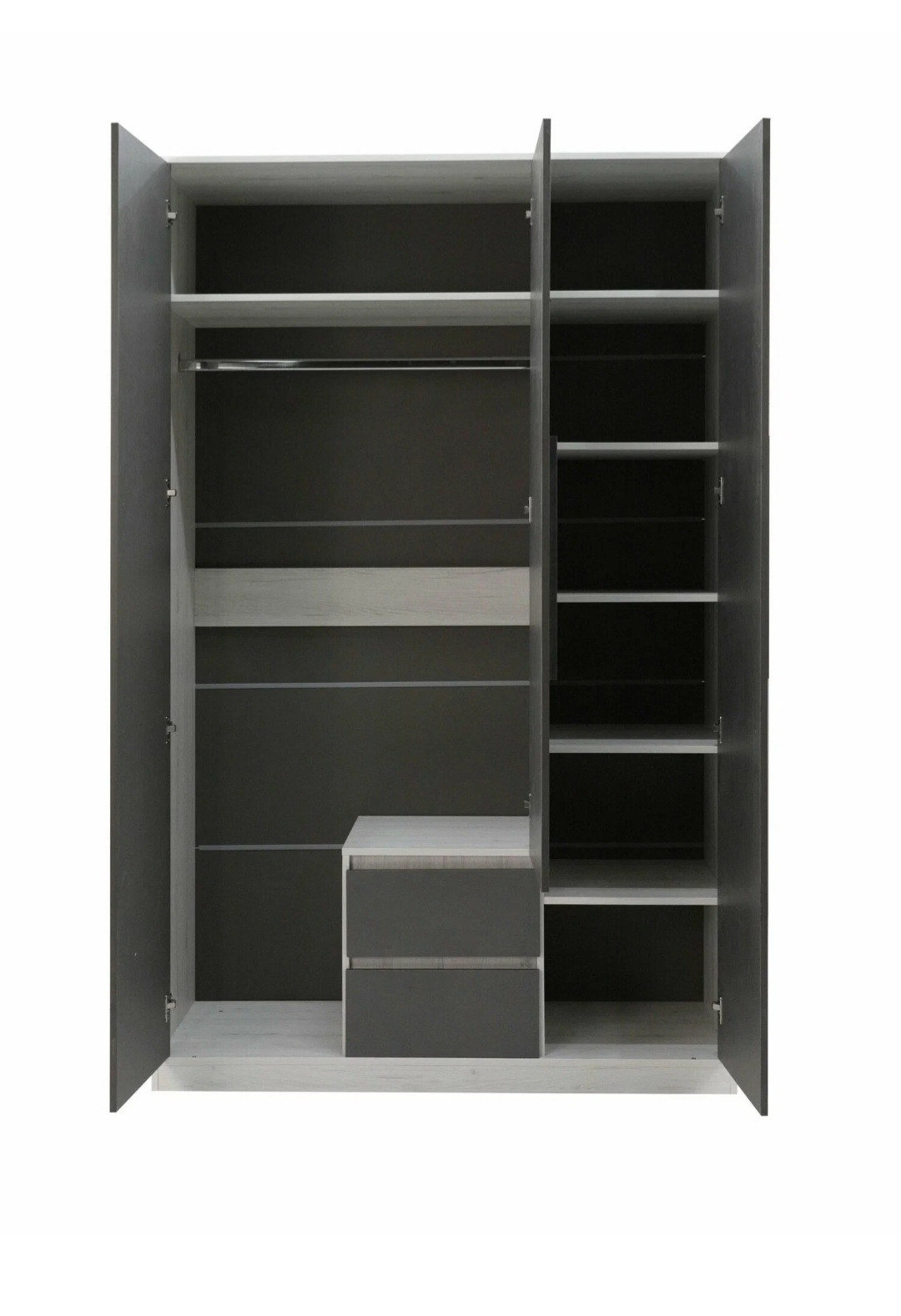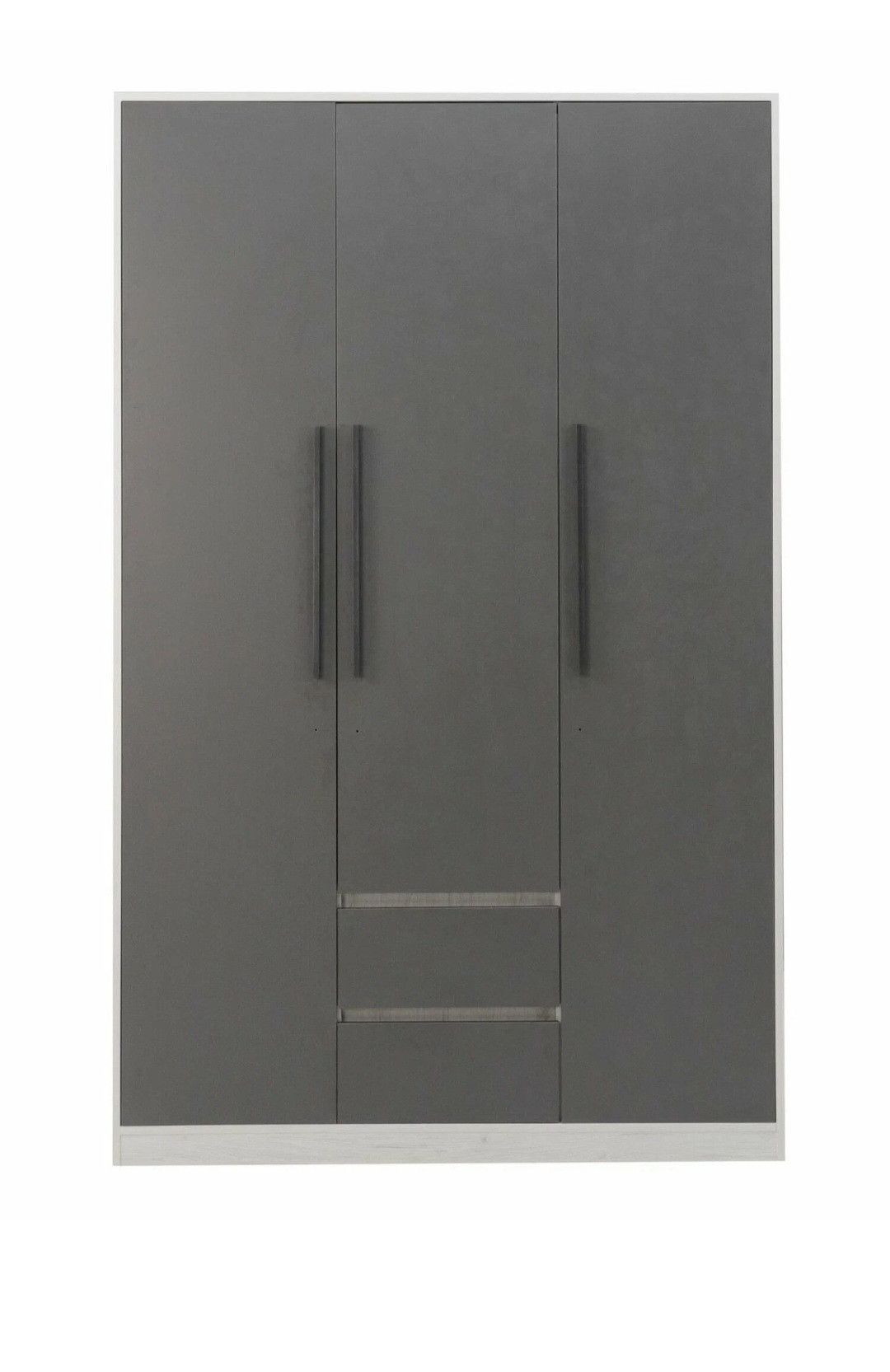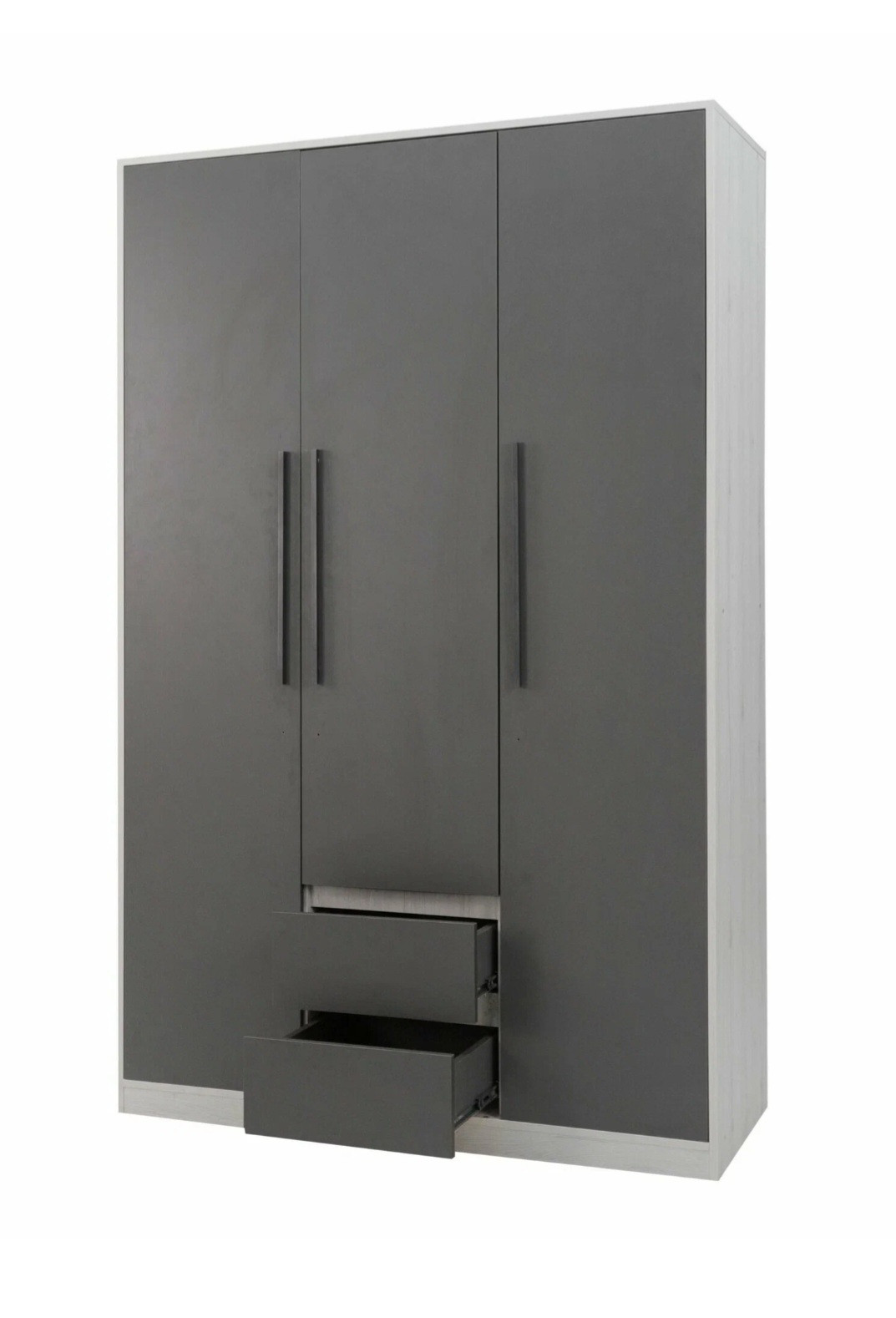 Шкаф распашной 3-х створчатый с ящиками Нильс Бодега белая/Графит 135х51х210