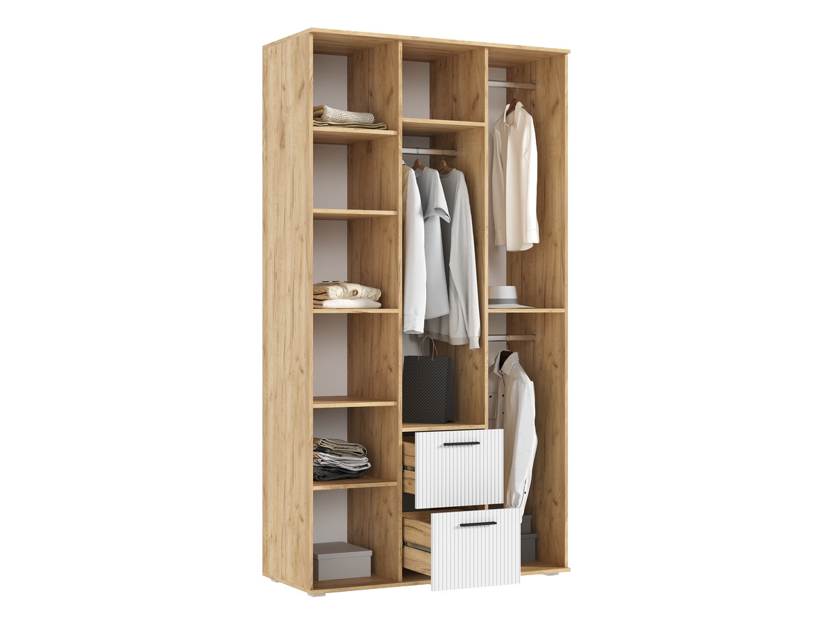 Шкаф распашной 3-х створчатый с ящиками Сильвия Дуб крафт/браш вайт 120х51х224