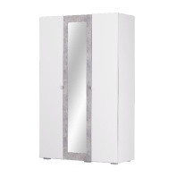Шкаф распашной 3-х створчатый с зеркалом Акцент 25 Белое сияние/Цемент светлый 125х52х202