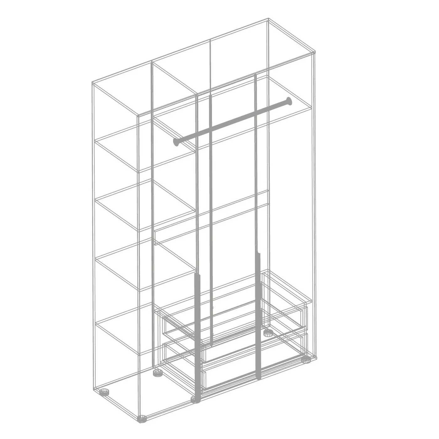Укомплектован штангой и полками, а также внутренним ящиком на шариковых направляющих