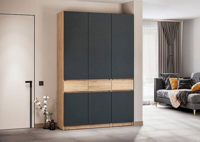 Шкаф распашной 3-х створчатый Стоуби ШК-1500 дуб крафт золотой серый графит 150х51х230