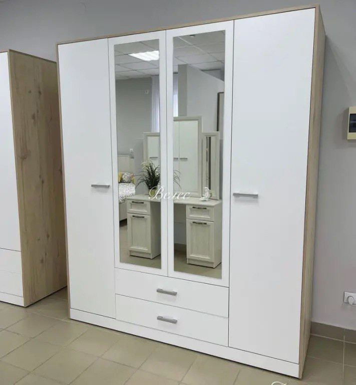Шкаф распашной 4-х створчатый 2 ящика Милана гаскон пайн белый 186х60х220