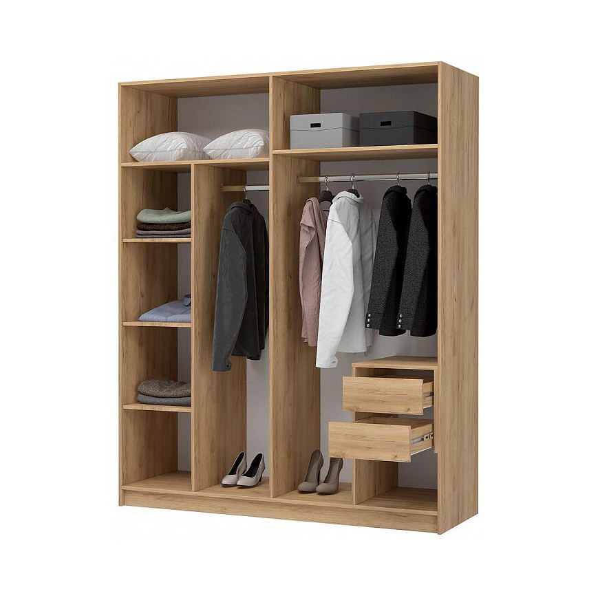Шкаф Лион — элегантное решение для упорядоченного хранения вещей в спальне, прихожей или гостиной. Внутреннее пространство разделено на удобные отделения со штангой и полками, что позволяет удобно разместить любые предметы гардероба. Стильный дизайн с вертикальными строгими ручками не перегружает интерьер.
