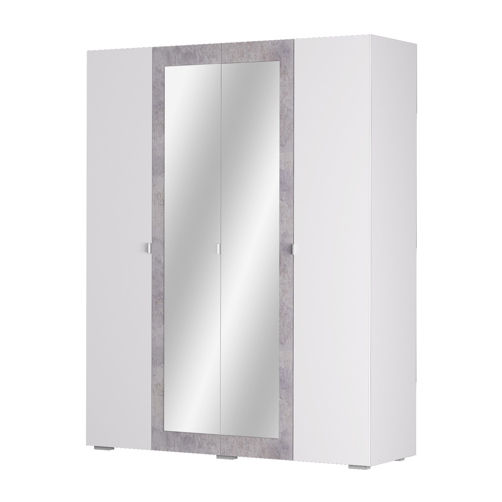 Шкаф распашной 4-х створчатый с зеркалом Акцент 24 Белое сияние/Цемент светлый 160х52х202