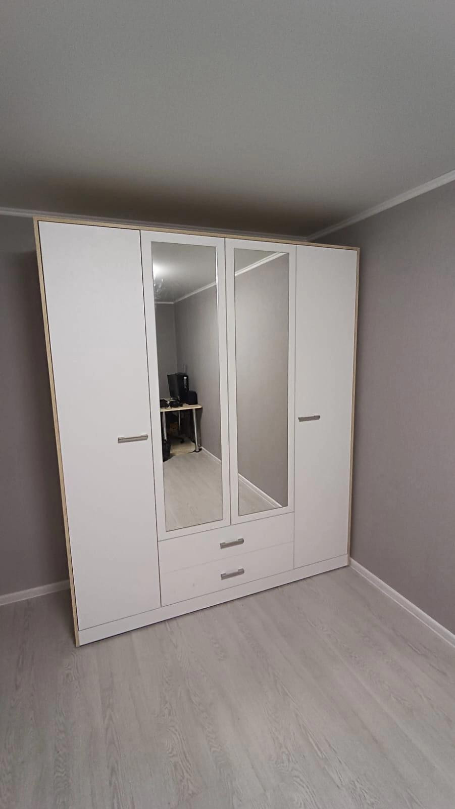 Шкаф распашной 4-х створчатый с зеркалом Милана шимо светлый белый 186х60х220