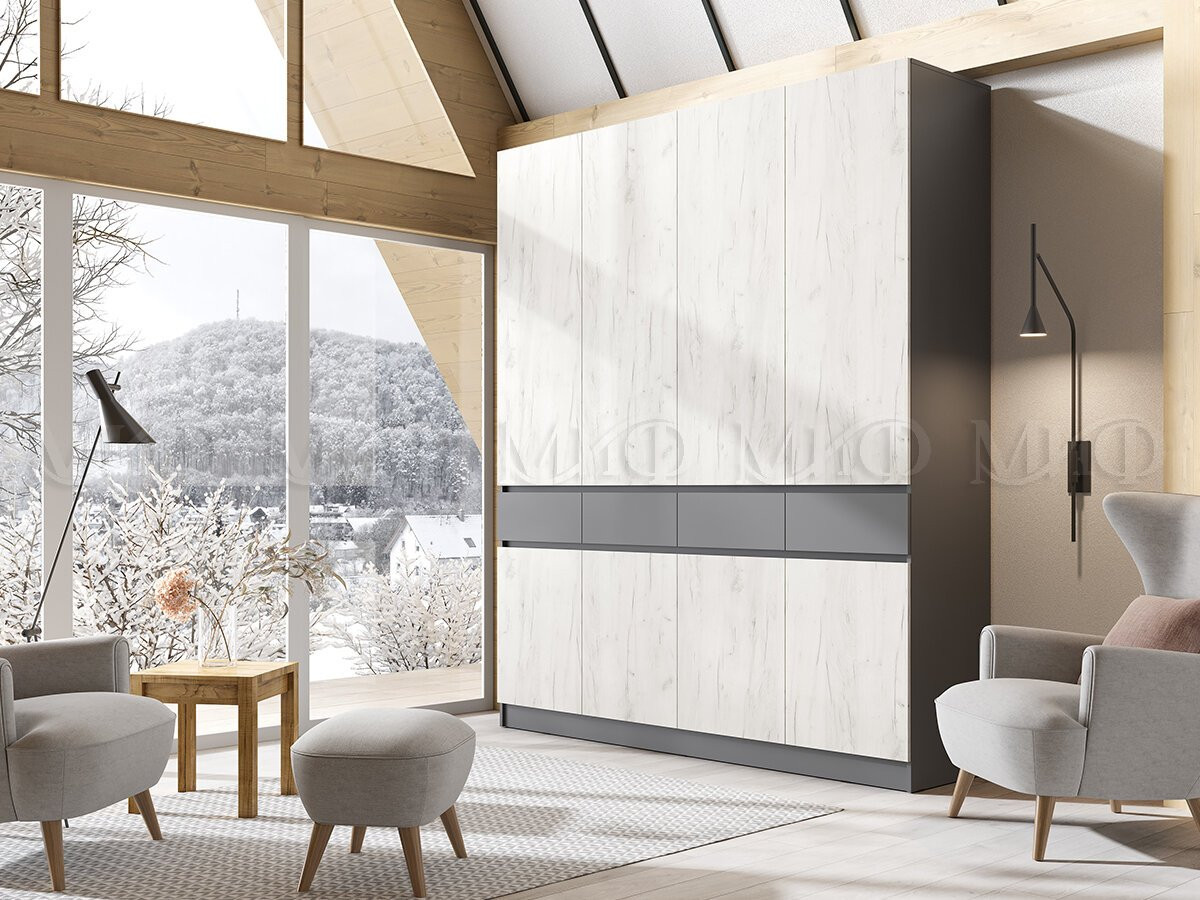 Шкаф распашной Роджина графит/дуб крафт белый 200*240*52