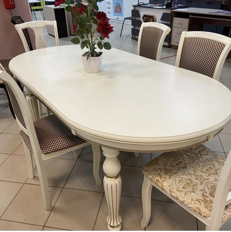 Стол обеденный , раздвижной , выполняется в трех цветах : белый / серебро ; слоновая кость/ золото : орех / золото . Орех /орех