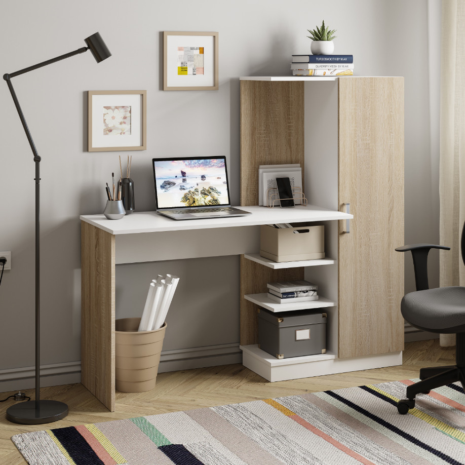Стол компьютерный Бейсик Дуб сонома/ белый 145х135х50
