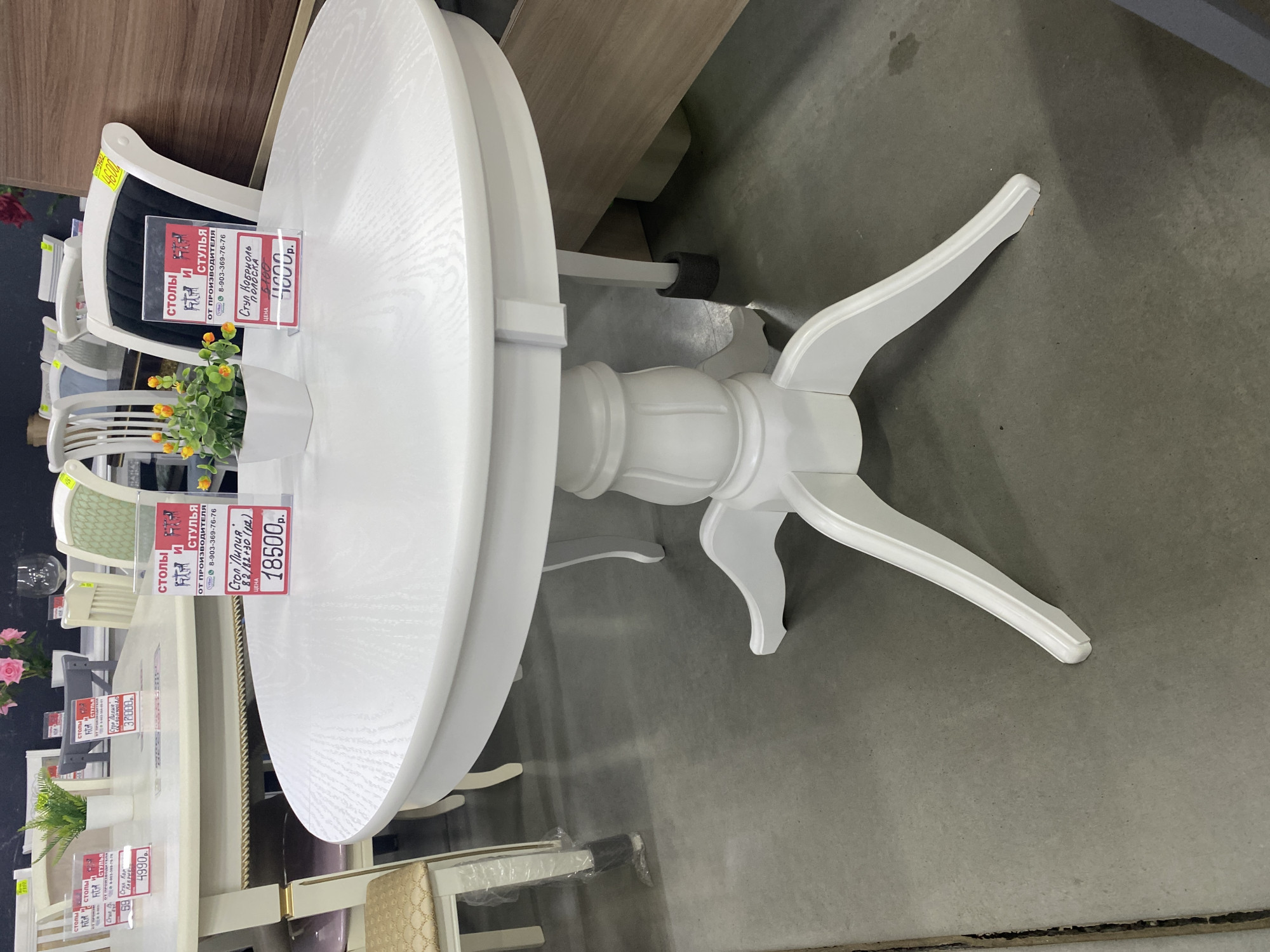 Компактный , круглый стол , для кухни , гостиной , дачи . Очень красивый уютный , раздвижной . В цветах : белый , слоновая кость; орех