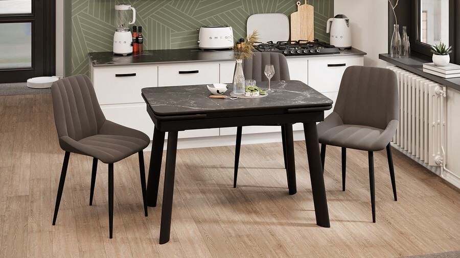 Стол обеденный Джойс Черный муар/черный мрамор 70*х110