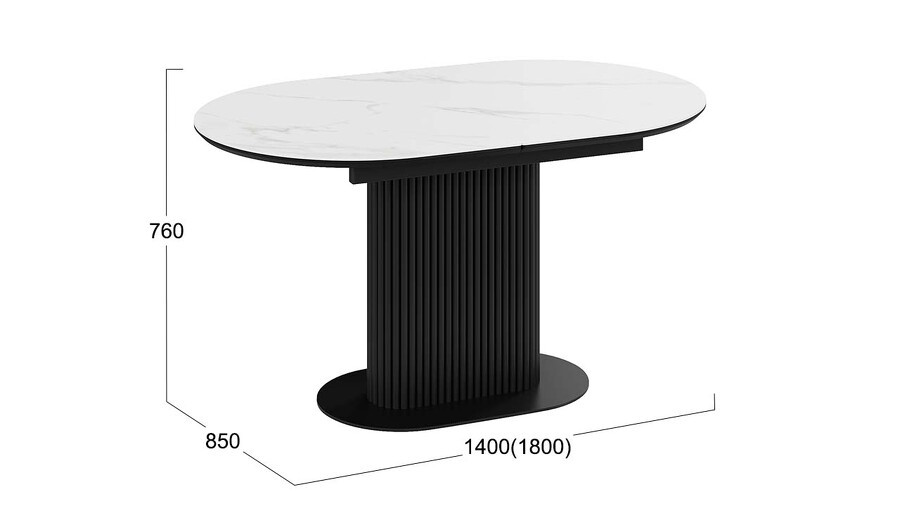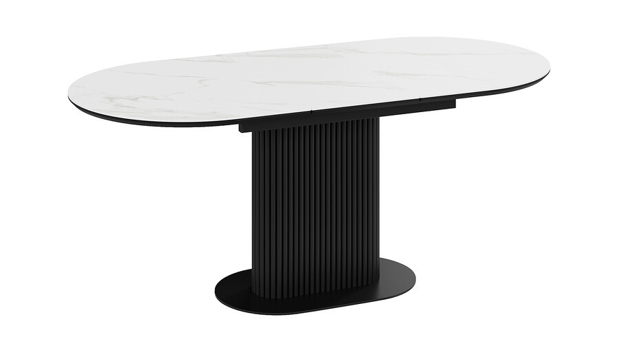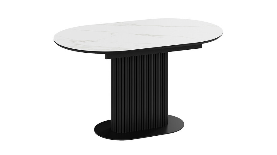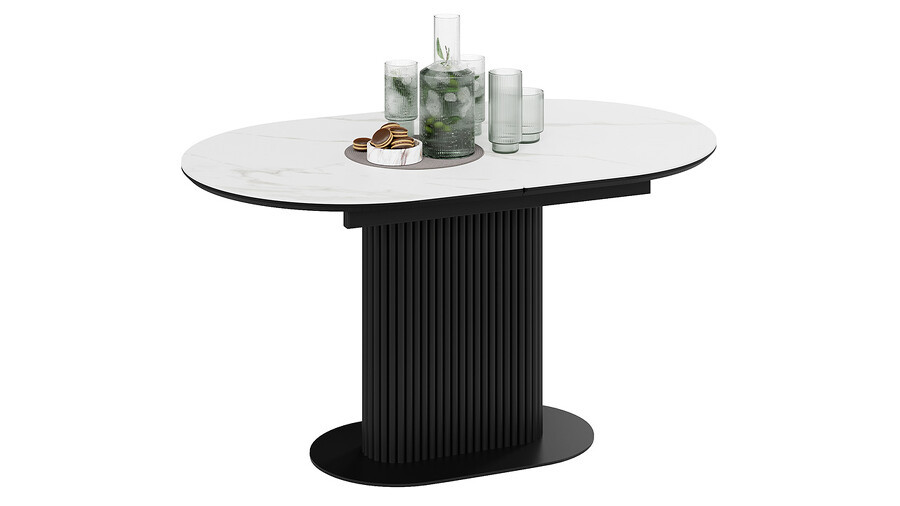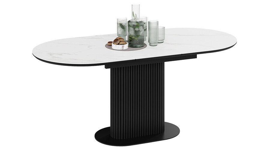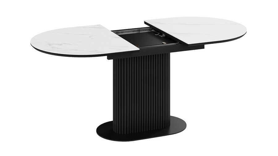 Стол обеденный раздвижной Эридан Черный муар/белый мрамор 85х140