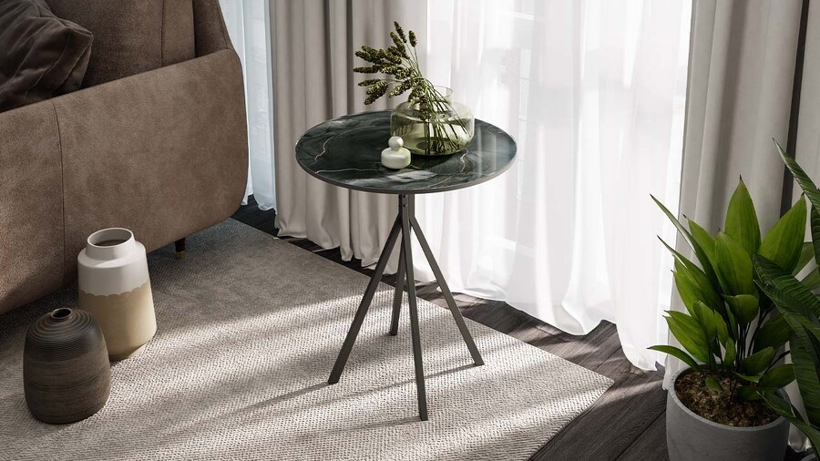 Стол журнальный Черный, Стекло Камень №12 48х48х57