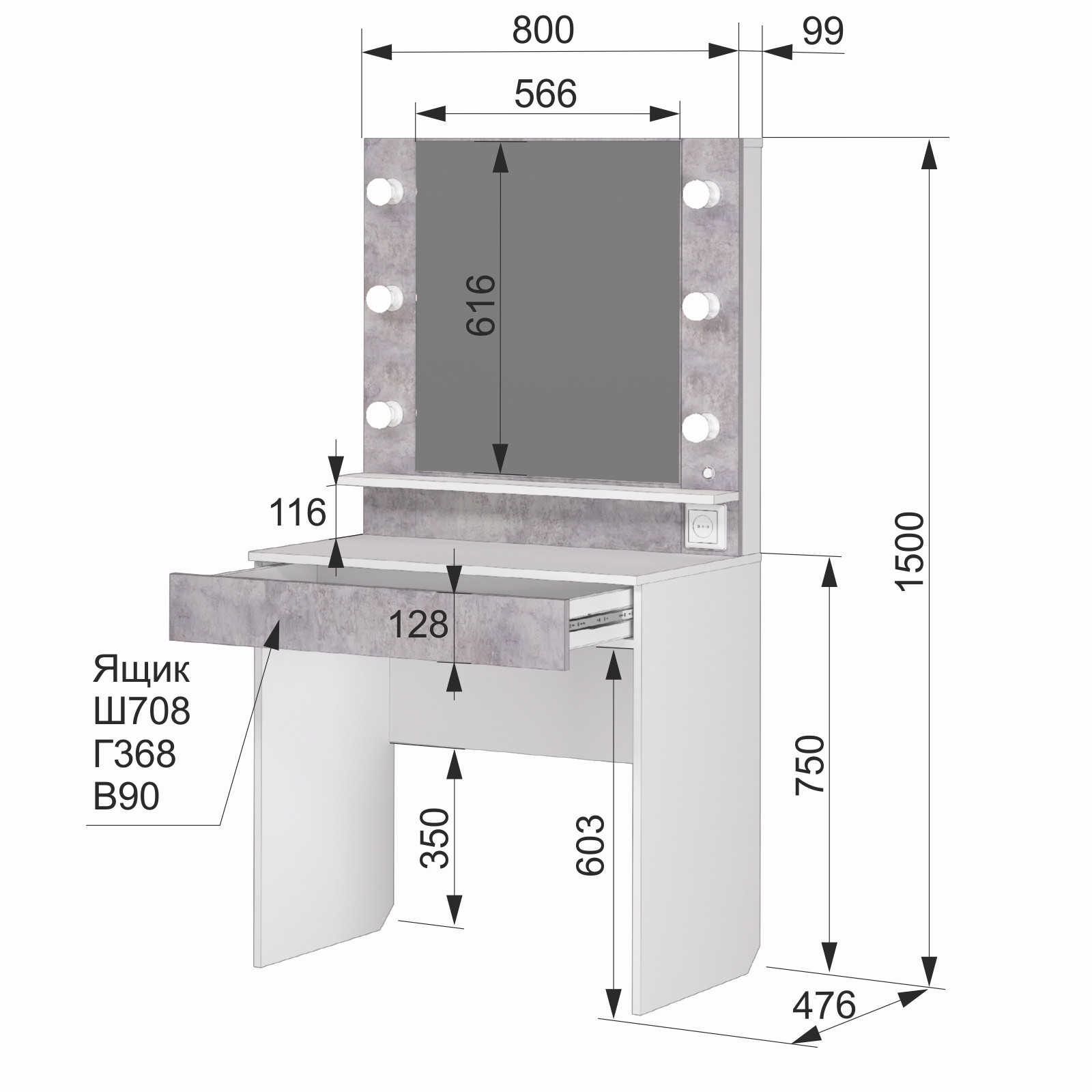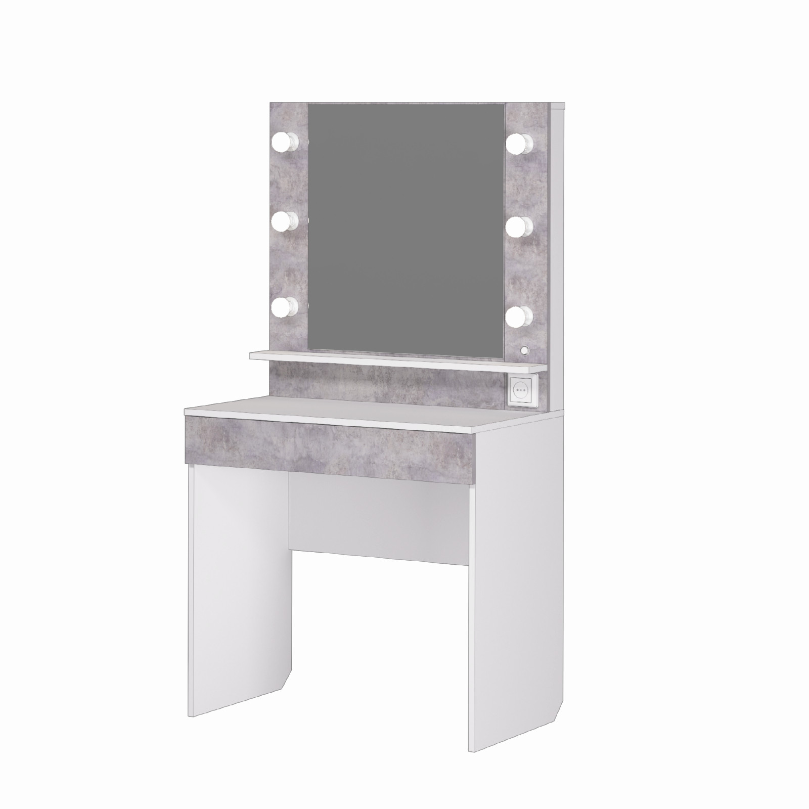 Элегантный туалетный столик с LED-подсветкой по периметру зеркала. Идеальное решение для создания атмосферы уюта и функционального пространства для макияжа и ухода. Яркие лампочки обеспечивают равномерное освещение без бликов.