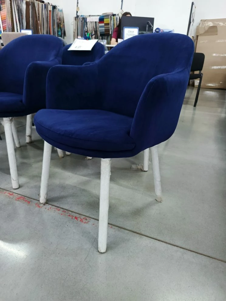 Стул кресло с мягкой спинкой Айсберг велюр синий/белый металл 50х50х82
