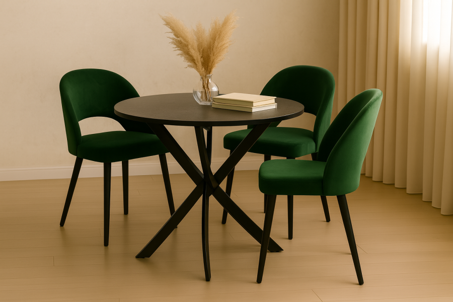 Стул мягкий Луно черный металл/зеленый велюр 62х54х79