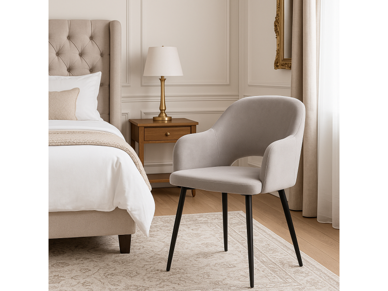 Стул мягкий Велла черный металл/серый велюр 57х57х81