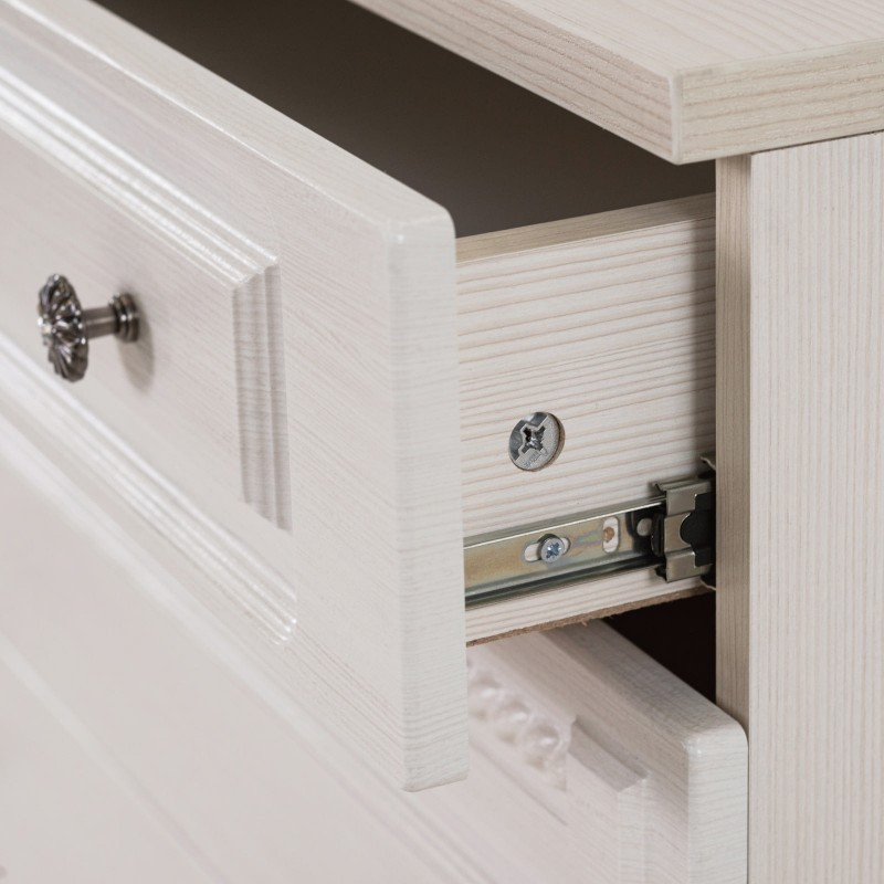 - Фурнитура: направляющие ящиков шариковые, полного выдвижения, металлические ручки с кристаллами, материал вставки - стекло.