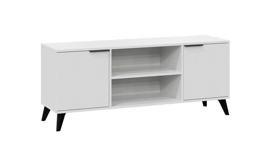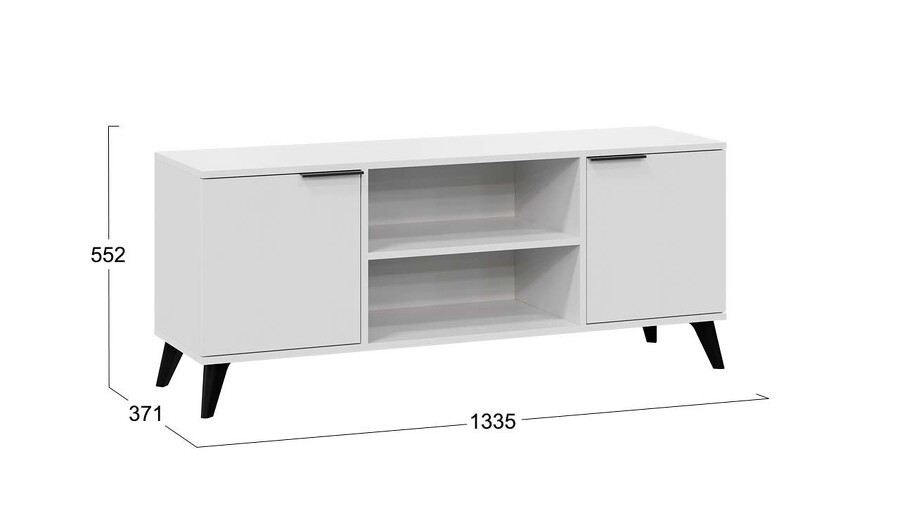 Тумба под ТВ Агата с опорами Черный матовый, Белый Ясень 134х37х45